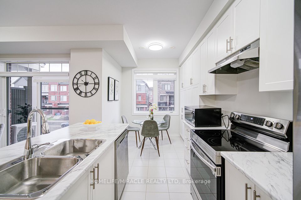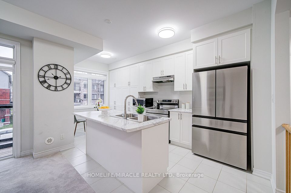 Elegant Freehold Townhouse in Kedron, Oshawa ?Welcome to modern living in one of Oshawa's most desirable neighbourhoods Kedron. This stylish freehold townhouse combines space, convenience, and contemporary design. Main Floor: Open-concept layout with a convenient laundry area and a 2-piece bathroom. Second Level: Soaring 9-foot ceilings highlight a sleek, contemporary kitchen featuring stainless steel appliances, a large island, and a pantry. The adjoining breakfast, living, and dining spaces are bathed in natural light from oversized windows and a patio door. Third Level: A bright and spacious primary bedroom with a walk-in closet, complemented by two well-sized additional bedrooms. Perfectly situated near Highway 407, public transit, schools, and parks. Just minutes from Ontario Tech University and Durham College, plus everyday amenities including Costco, Walmart, FreshCo, Home Depot, Superstore, LCBO, and Cineplex. This home offers the ideal blend of style, functionality, and unbeatable location.