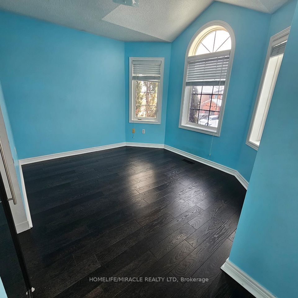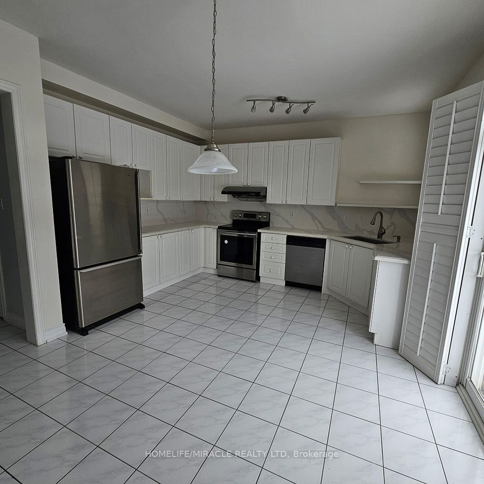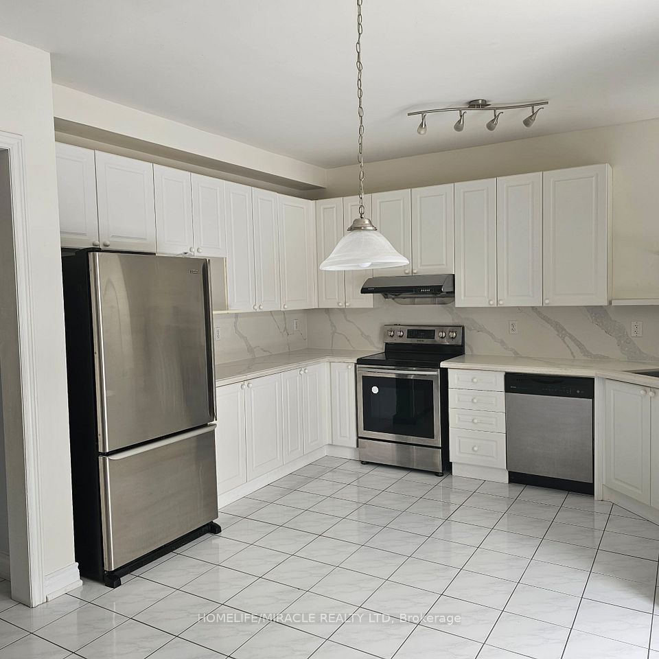 This beautifully maintained detached house offers 2,182 sq ft of spacious, immaculate living, highlighted by soaring 9 ft ceilings and a pristine, like-new atmosphere throughout. Thoughtful upgrades include California shutters, main floor laundry, and a gas fireplace with a marble surround. The modern kitchen is equipped with a quartz countertop, stylish backsplash, single undermount sink, and stainless-steel appliances. The primary bedroom features dual walk-in closets (his & hers), while the second bedroom includes its own walk-in closet and a large window. Additional highlights are an upgraded, elegant wall lighting, a 5-panel bow window, and a 3-piece bay window with views of the fully fenced backyard. Designed for entertaining, the backyard features an interlocking stone patio and a convenient BBQ gas line. Enjoy hardwood flooring throughout both main and upper floors, vibrant Wismer neighborhood, this home is within walking distance to schools, provides direct access to the TTC subway station and Mount Joy GO Station, and is close to shopping. It is also located within the feeder zone for some of Ontario's top-ranked schools, including Bur Oak Secondary and Wismer Public School, making it an excellent choice for families focused on education.