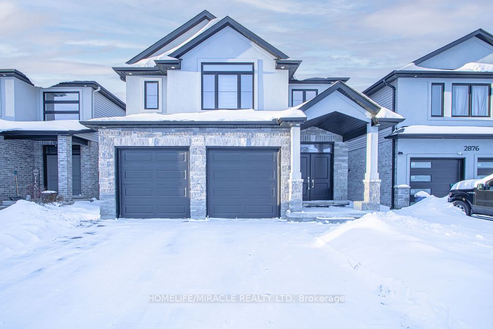 Discover your dream home at 2872 Doyle Dr, London South-a stunning all-brick residence in the sought-after community! Boasting 2618 sqft of luxurious open-concept living, this property features 4 spacious bedrooms and 4 bathrooms, including two master suites with ensuites, a chef-inspired kitchen with quartz countertops and stainless steel appliances, and soaring 9 ft ceilings that flood the space with natural light. The expansive family and living areas are perfect for entertaining, while the large backyard offers endless outdoor enjoyment. With a separate basement entrance and big windows, there's incredible potential for future customization. Ideally located just minutes from Highway 401, the University, shopping, and amenities, this home blends elegance, convenience, and comfort-perfect for families seeking upscale living in one of London's most desirable neighborhoods.