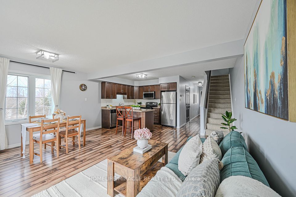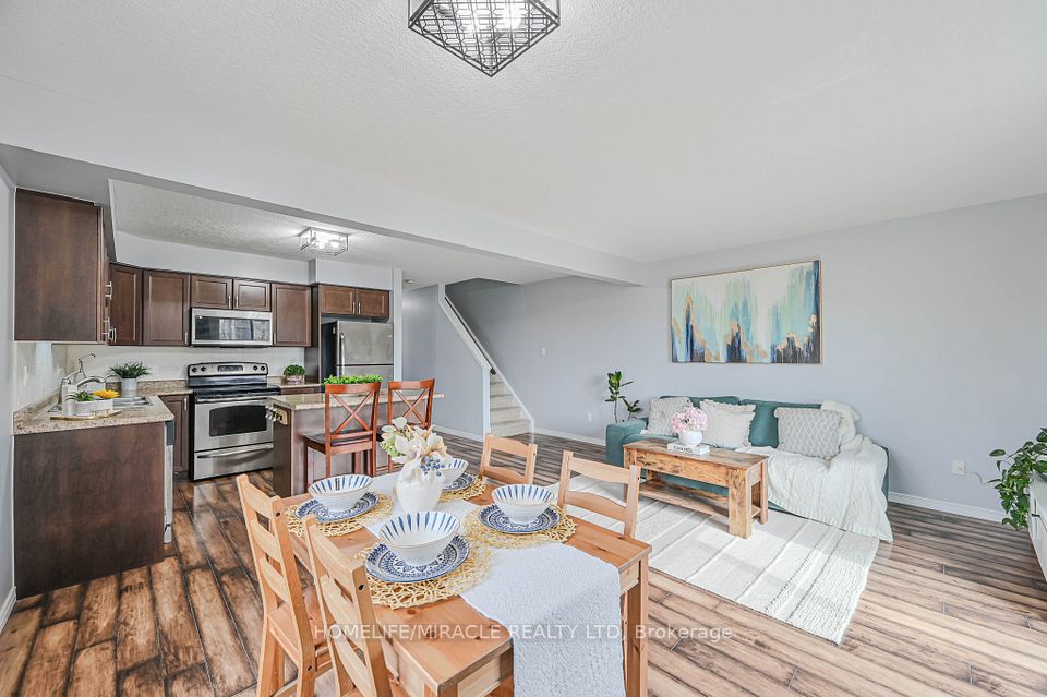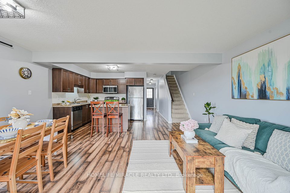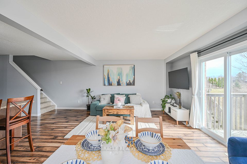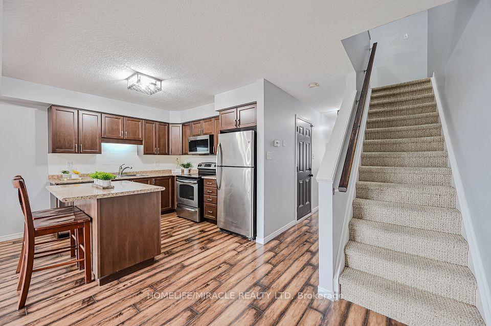 Welcome to this beautiful former model home, a 3-bedroom, 2-bathroom Henderson end-unit townhome presenting 1,347 sq. ft. of stylish living space. Designed with soft, elegant colours and a bright open-concept layout, this home feels both modern and inviting.The main floor kitchen features stainless steel appliances, a large island, and plenty of space for entertaining. Sliding doors from the great room open to an elevated deck with stairs leading to the backyard, perfect for enjoying outdoor living.Upstairs you'll find a spacious primary bedroom with walk-in closet, along with new upgraded light fixtures throughout and updated flooring in the upper bathroom. The home also includes a single-car garage with inside entry and an unfinished lower-level rec room ready for your personal touch.Located just minutes from Highway 401 and Guelph, and close to historic downtown Hespeler's shops, cafés, and community charm, this home is perfect for families seeking both comfort and convenience.